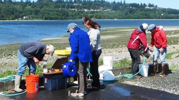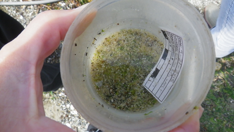 We have a group of trained volunteers that go to various beaches several times a month to "survey" for surf smelt eggs. Surf smelt are "forage fish" that are about 6 " long, travel in large schools, and are an important food for bigger fish and birds - (and people.) They spawn (lay and fertilize eggs) in large numbers on sandy/gravelly beaches at the high tides. After 2 weeks, some of the eggs hatch into tiny fish and get back out into the water to grow and prosper and sustain the food web of life!